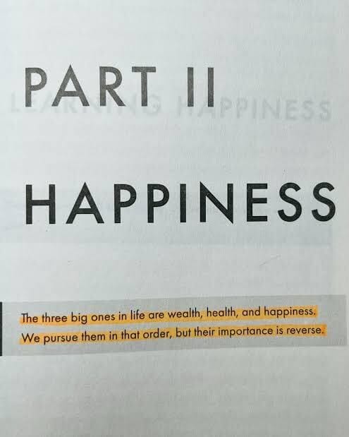 As três grandes coisas da vida são riqueza, saúde e felicidade. Nós as buscamos nessa ordem, mas sua importância é inversa.